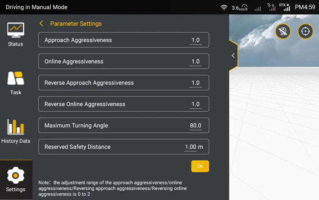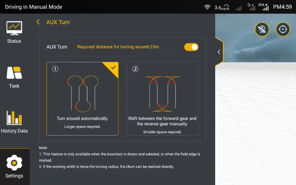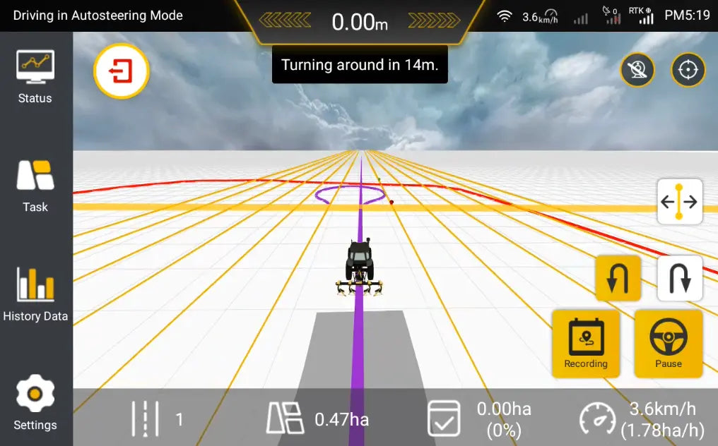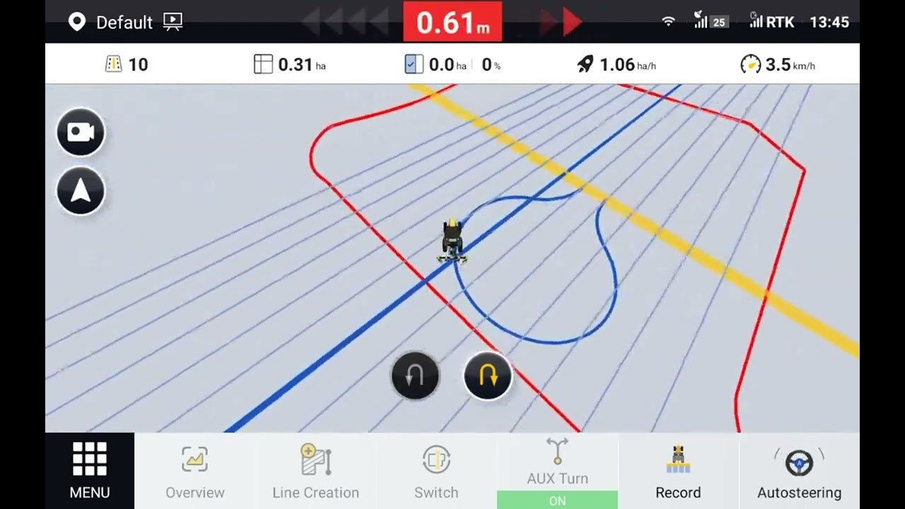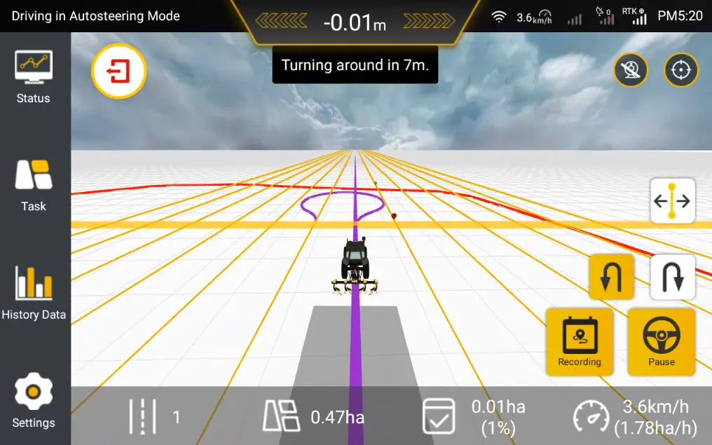 Step 4: In the driving in autosteering mode, click "←" or "→" on the guidance line requiring Basic U-turn, and the vehicle will turn around automatically after reaching the turnaround position.