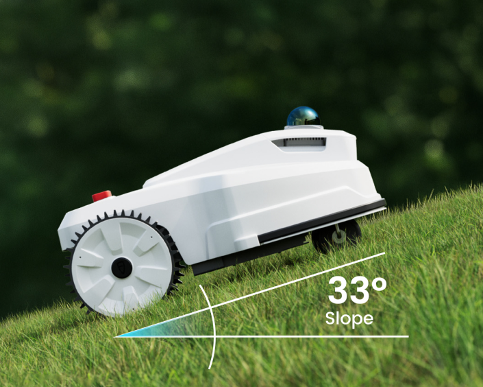 LiDAR sensor and bumper ensure safety, while high-grip tires and anti-slip control provide stability on wet grass, slopes, and gravel paths.